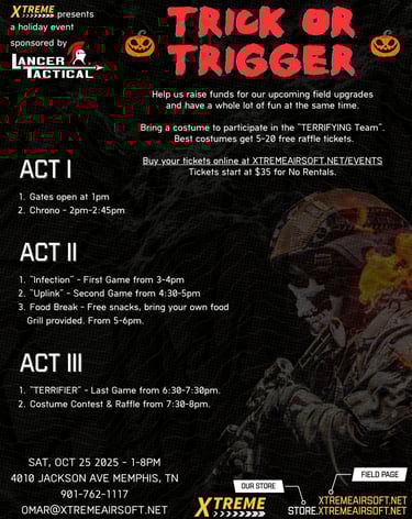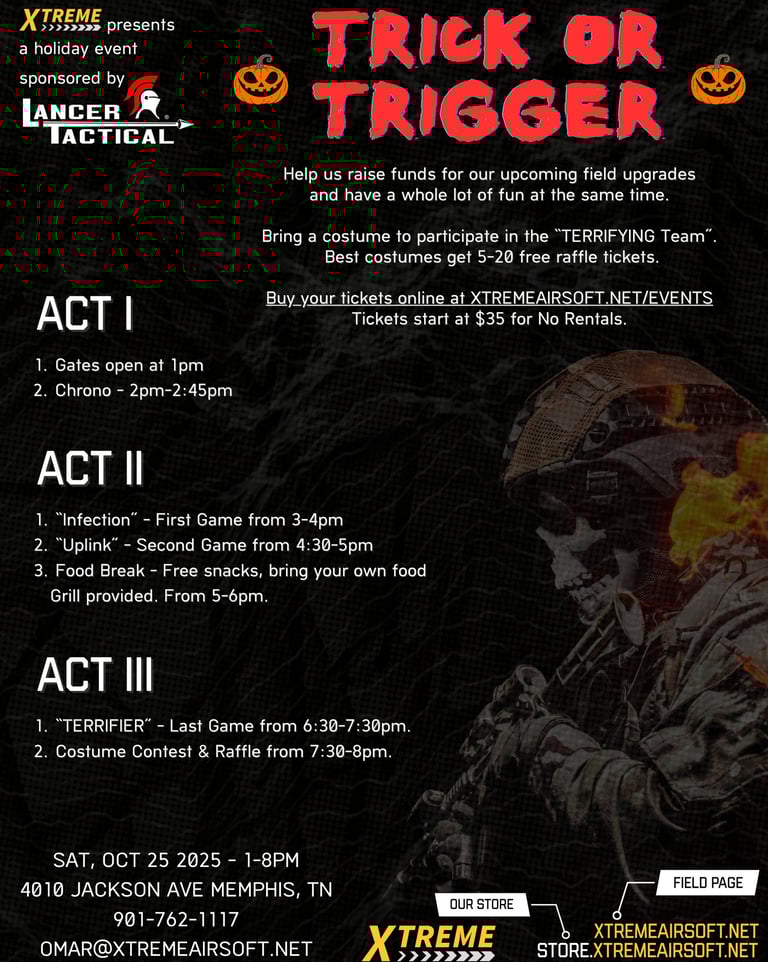 Join us for a smaller scale event this Halloween season. We will be playing regular games such as UPLINK combined with a unique, scary night game "TERRIFIER"!